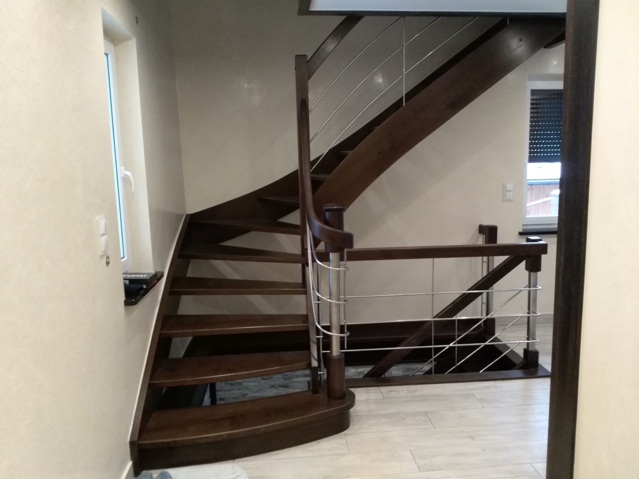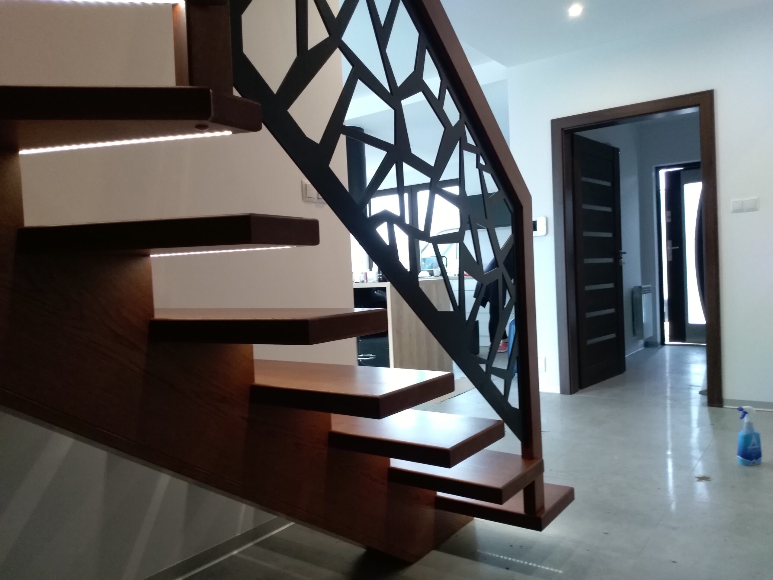 Dobre schody prowadzą naturalnie: mają odpowiednie proporcje, stabilną konstrukcję i wykończenie, które dobrze się starzeje. Dopasowujemy je do układu domu, światła i stylu wnętrza — tak, żeby całość wyglądała spójnie.